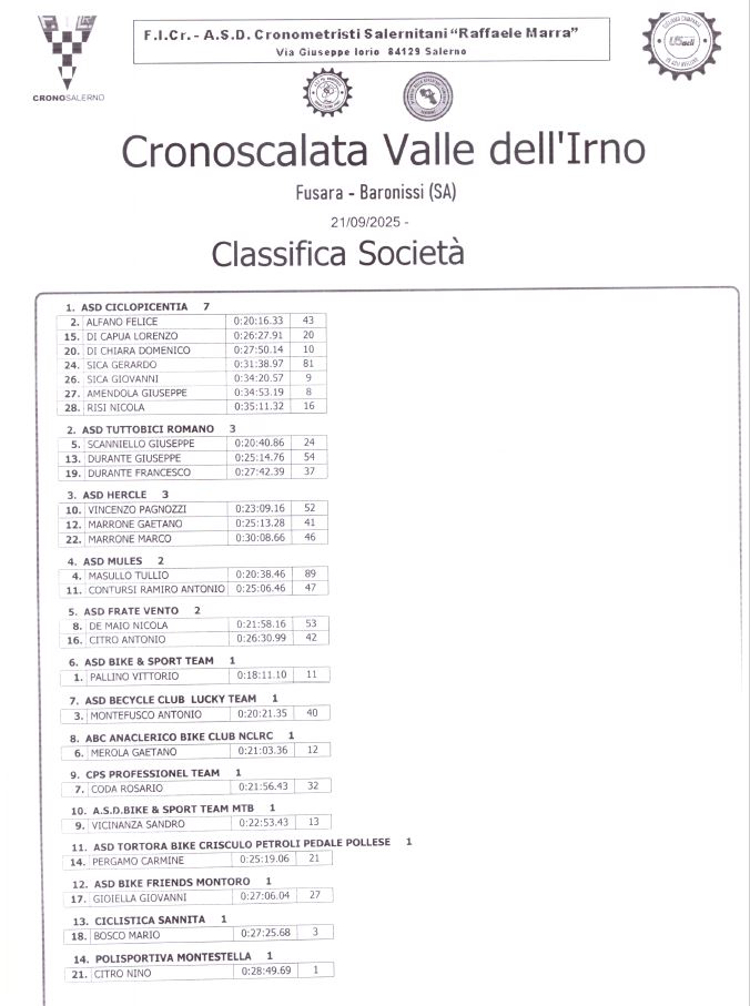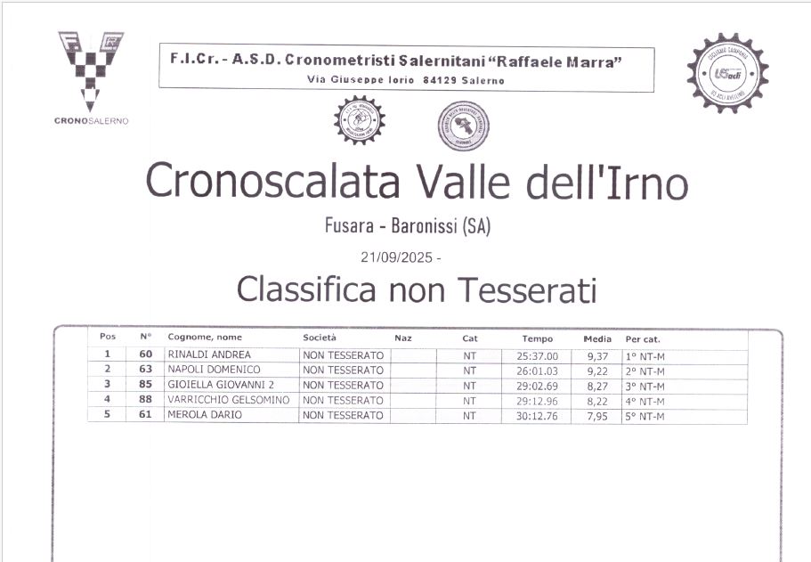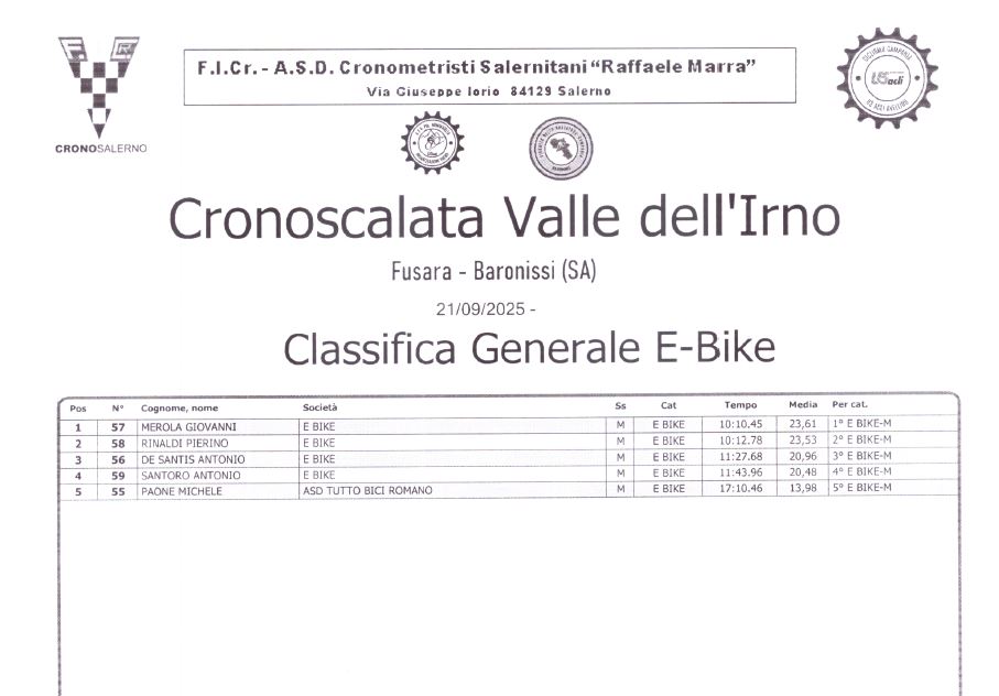 CRONOSCALATA VALLE DELL'IRNO FESTA DELLA MONTAGNA IN MTB - E BIKE
